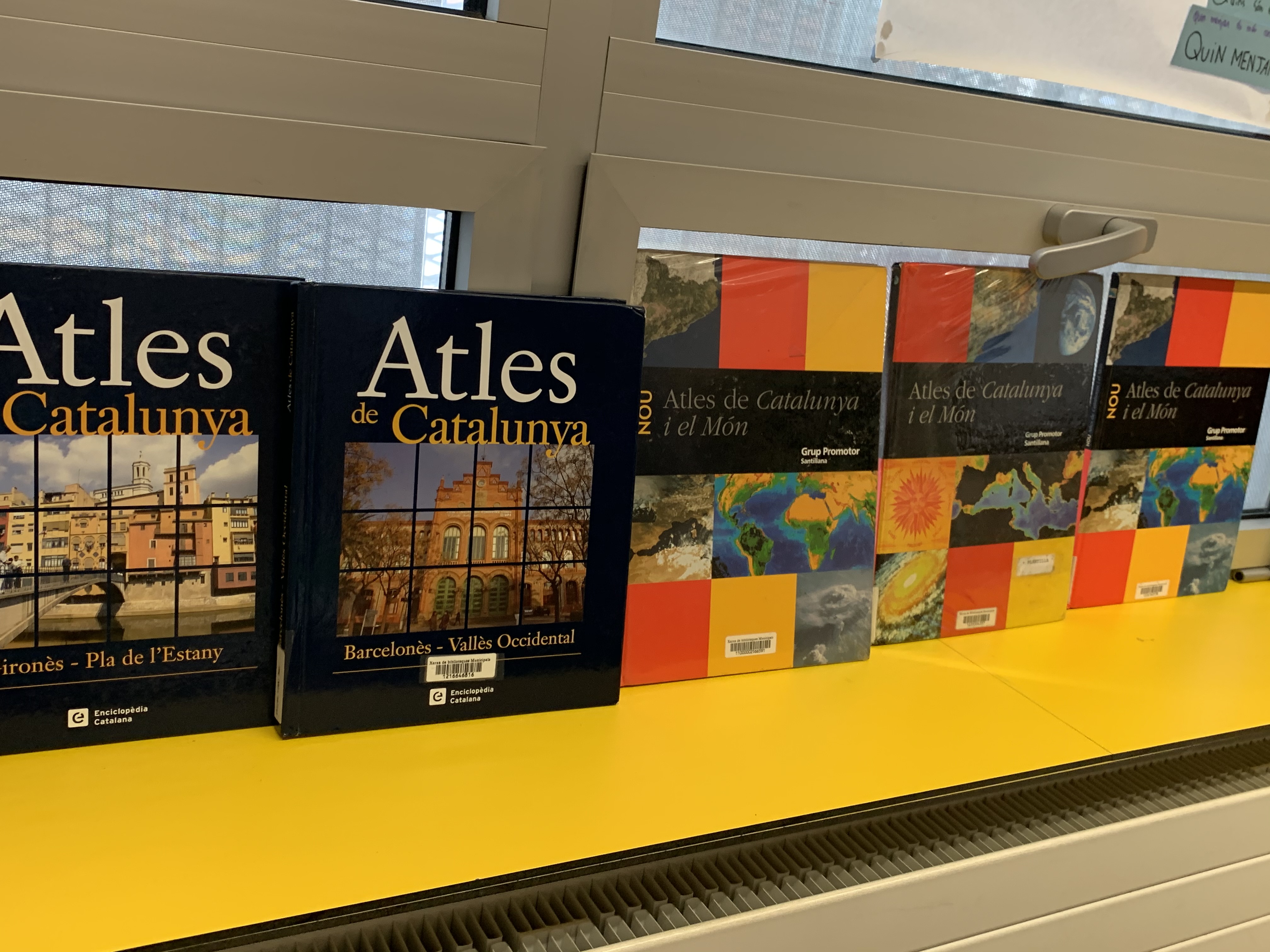 També tenim uns llibres de consulta que es diuen ATLES, que són els que ens informen de part de la majoria de coses que hi ha en el món. Nosaltres tenim molts atles, i ens ajuda a buscar informació pel projecte. Tambe tenim altres tipus de llibres de consulta.