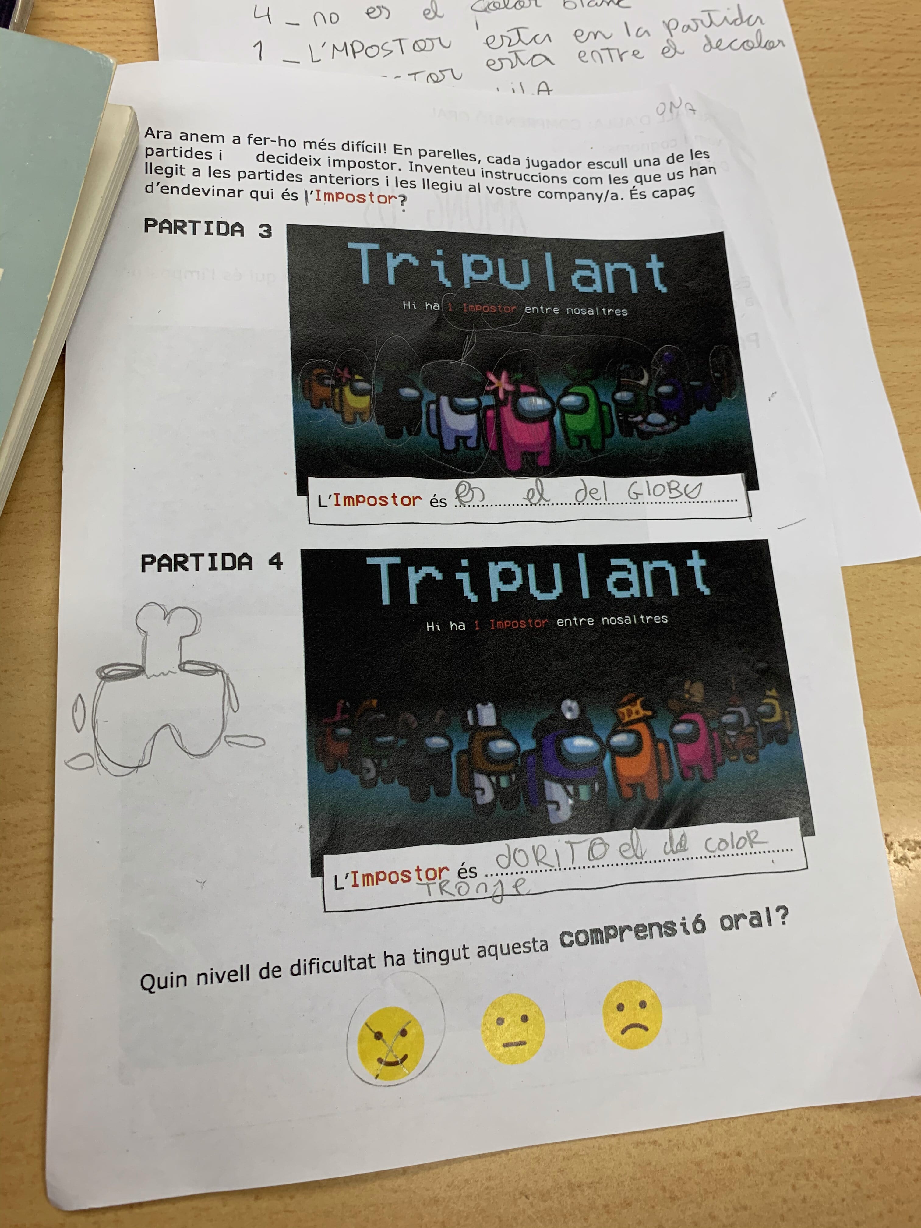 També hem fet una feina d’expressió oral molt divertida. El joc es diu Amoung Us!! És un joc de pistes amb uns personatges i hem d’esbrinar quin és l’impostor. Hem fet 4 partides i dues d’elles les hem creat nosaltres i en parelles perquè els nostres companys i companyes esbrinin qui és l’impostor.