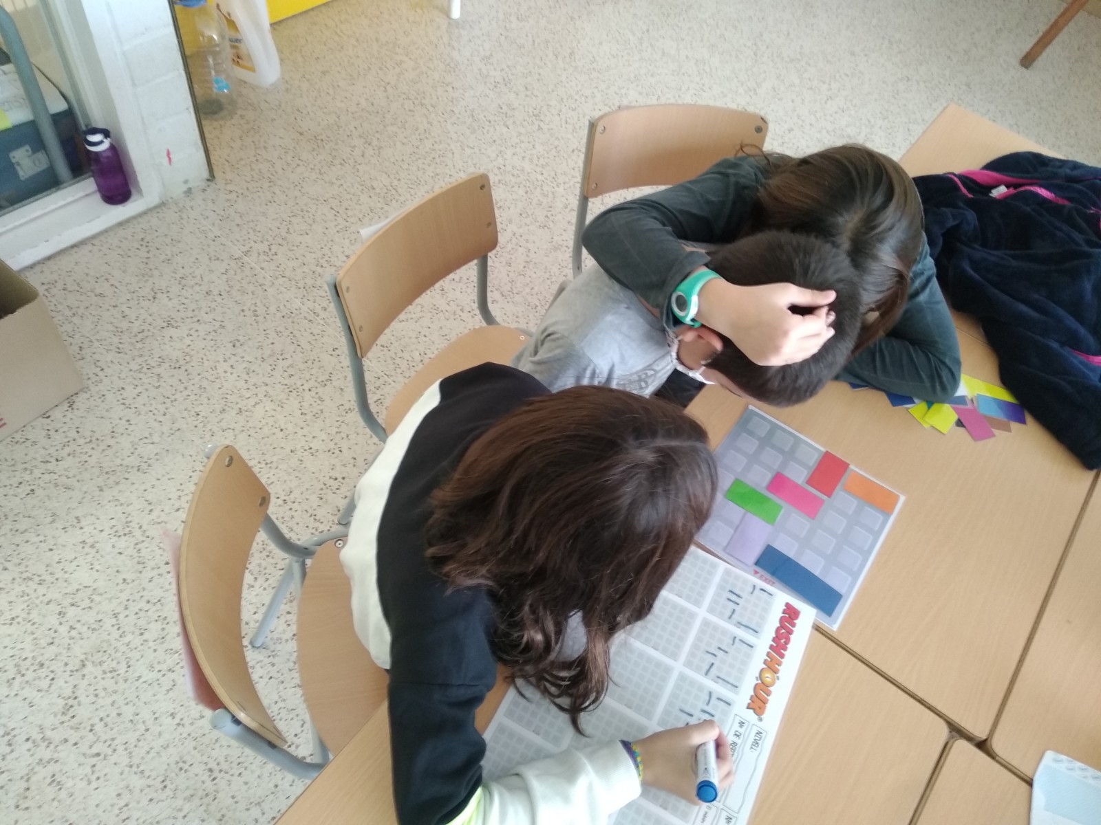 Els nens i nenes de 4tB hem començat RACONS!!! En el  racó verd tenim per fer itineraris per Barcelona, reptes amb escuradents i el Rush Hour . Al  racó lila tenim lectura L’illa de Paidonèsia, dibuixa el  que et dic i petits textos de comprensió lectora. Per últim el racó blau que fem el Innovamat. El mestres aniran posant més activitats als racons durant el curs. Aquí teniu algunes fotos perquè ens pugueu imaginar: