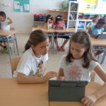 Al taller es treballa per parelles, cada una té un IPAD i juguem a aplicacions relacionades amb la robòtica.