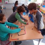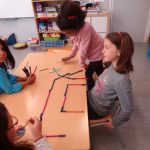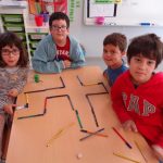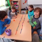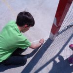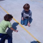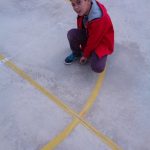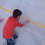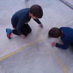 3rd grade students make and mark parallel lines, perpendicular lines and intersecting lines in the classroom and in the playground: