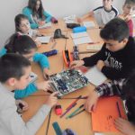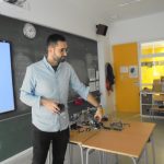 Quan va acabar d’explicar-nos coses sobre el primer ordinador, els microxips i els transistors, ens va ensenyar com muntar un ordinador (ell n’havia desmuntat 2 per a nosaltres). Mentre el muntava i ens ho explicava, ens anàvem passant les peces d’un altre ordinador.