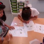 3rd grade pupils learn to diferentiate straigh lines and to draw them with a ruler and a set square:
