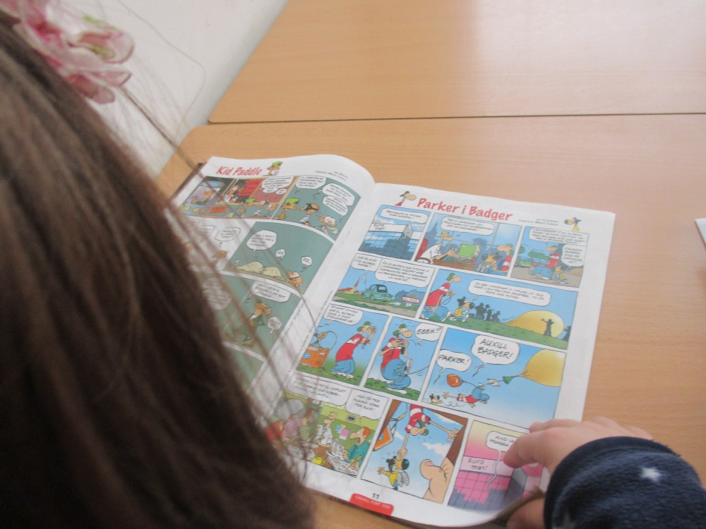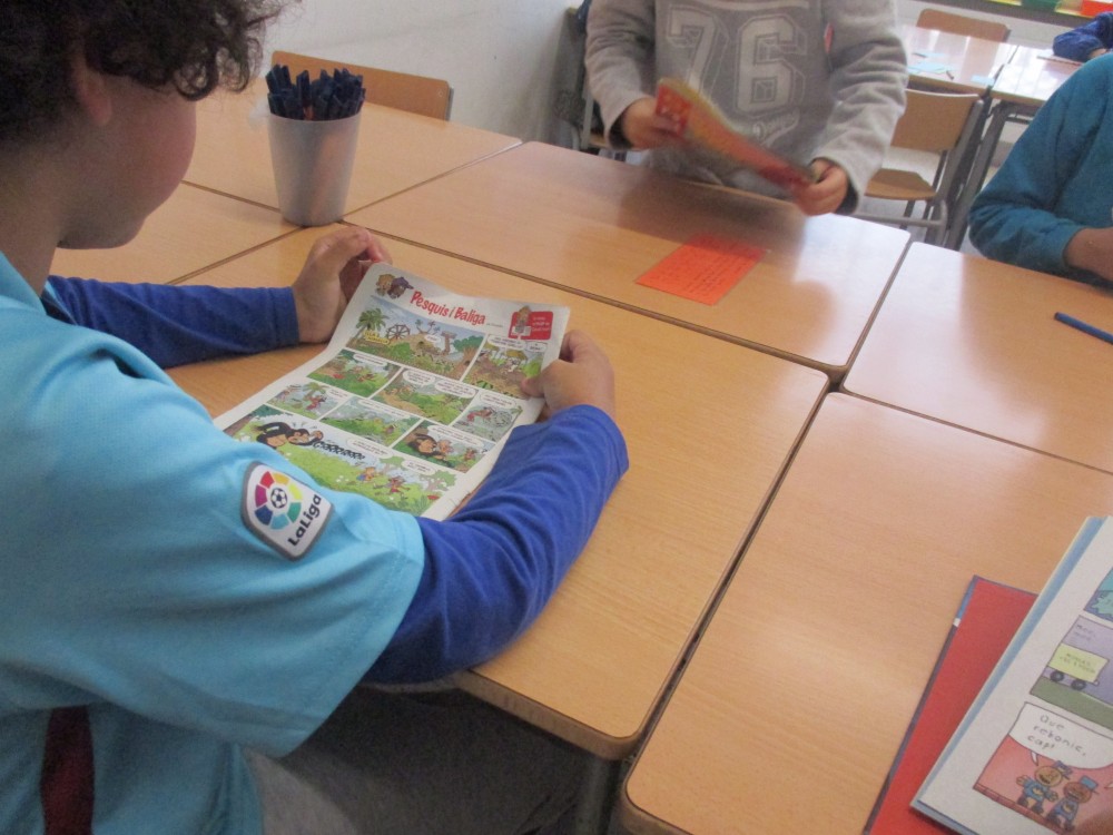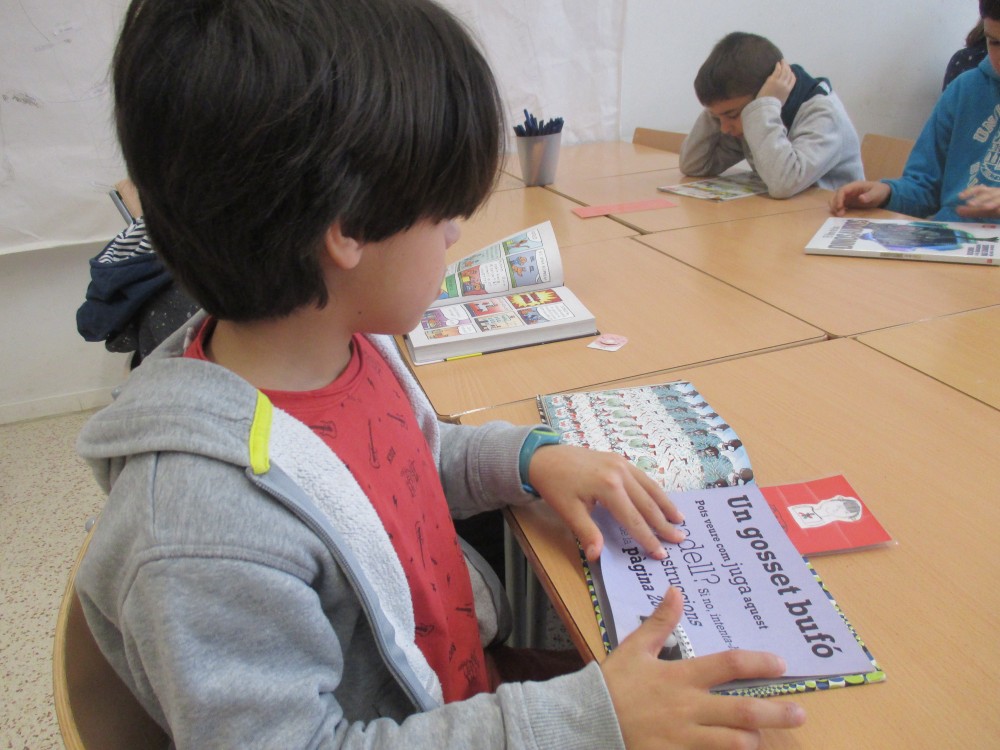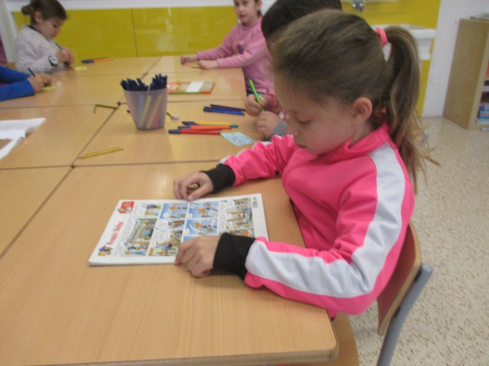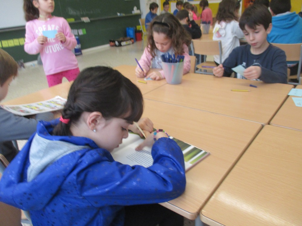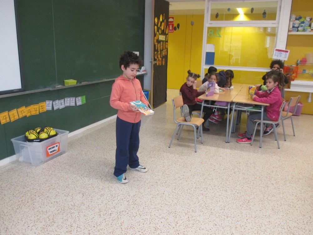 L’estoneta de lectura es quan estem tranquils i en silenci llegint. Nosaltres llegim llibres i Tatanos. Els nens/es quan arriven a l’escola posen el nom a la llista del menjador i es posen a llegir. Quan acaben de llegir un llibre poden recomanar-lo.