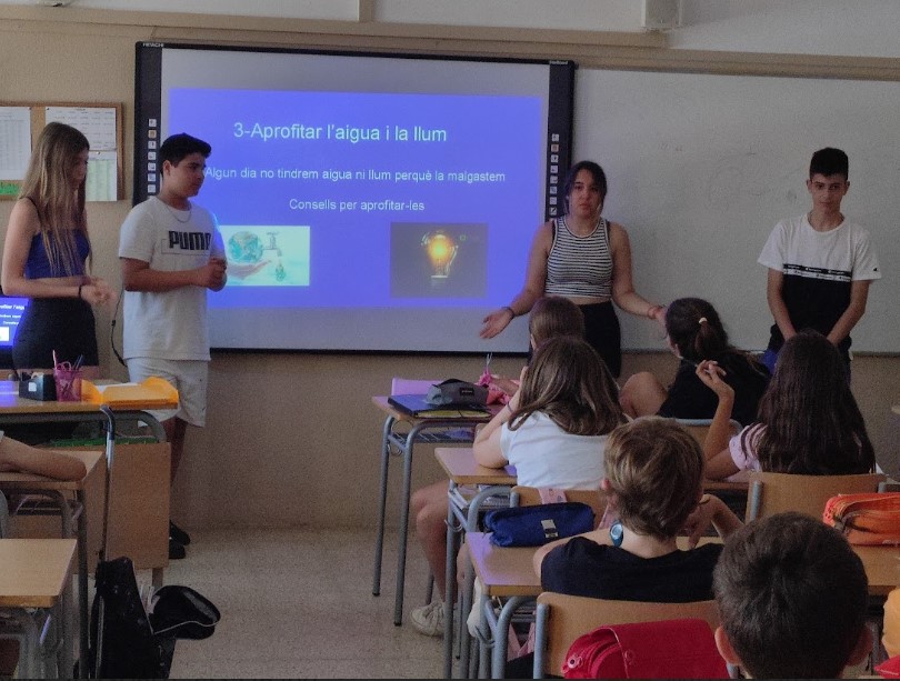 Per tal de conscienciar a la major part dels alumnes de l’Institut-Escola sobre aquesta situació que ens afecta a tots, l’alumnat de 2n ESO va anar a les classes de primària (3r/4art/5è/ 6è) el passat 1 de juny. A les presentacions van emfatitzar sobre què podem fer cadascú de nosaltres.