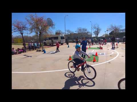 La classe de segon hem anat a la Muntanyeta per circular amb bicicletes i patinets en un circuit que ens ha preparat en Xavi, el policia més didàctic de Sant Boi. Ens ha explicat les normes més importants de seguretat per anar amb aquests vehicles i per on és correcte circular a la ciutat. Quan