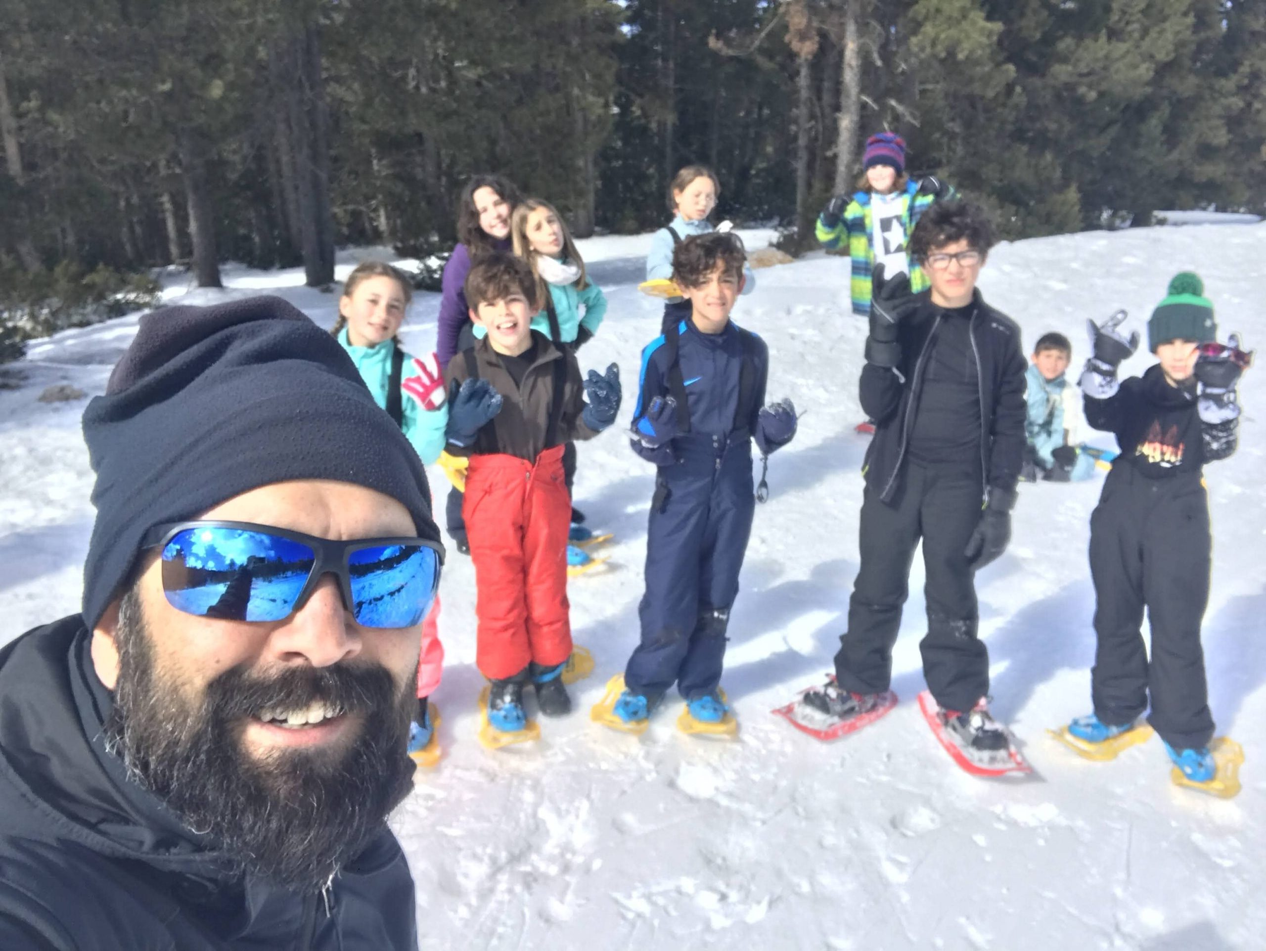 -La segona activitat va ser caminar per la muntanya amunt amb raquetes als peus per trobar “ajuda” i poder tornar a casa seva. Però el més divertit va ser caminar per la neu verge.
