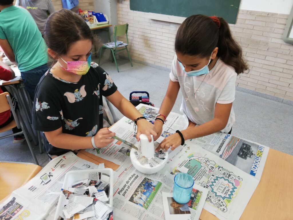 Els nens i nenes de 5è hem aprofitat les hores de plàstica per treballar la tècnica de paper maixé i treballar les fruites de la tardor en mesures XXL!!
