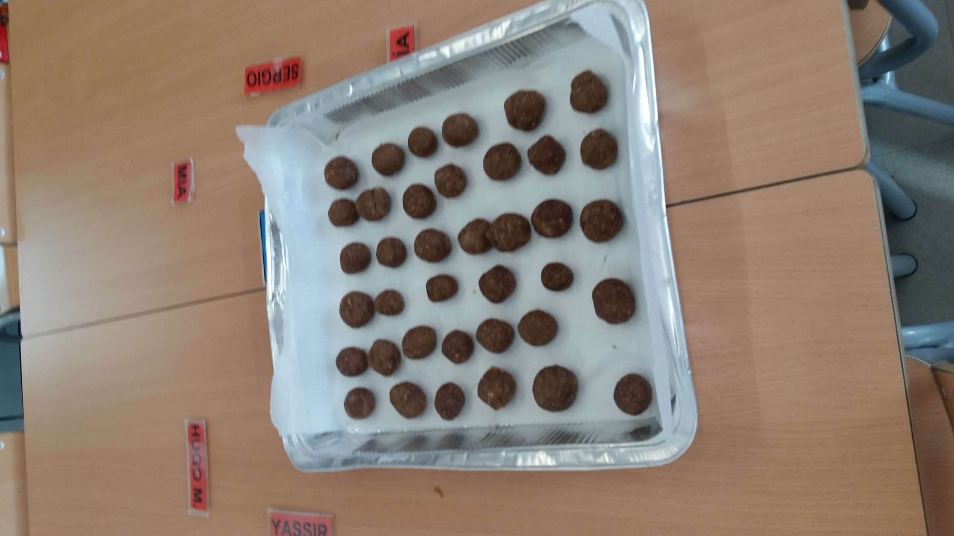 AVUI A LA CLASSE HEM FET PANELLETS DE XOCOLATA AMB PATATA, SUCRE, AMETLLA MOLTA I XOCOLATA. ENS HO HEM PASSAT MOLT BÉ!