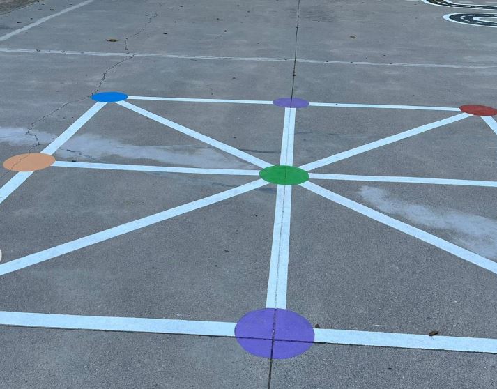 Espais de creativitat i imaginació: Cuineta i jocs simbòlics. Zona artística i de pintura. Bobines pintades i jocs de terra com escacs, carreteres, 4 en ratlla… “Caixes de so” a Infantil per experimentar amb els sons.