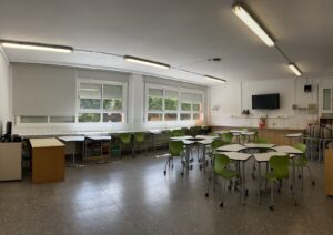 AULA POLIVALENT L’aula polivalent és un espai del centre destinat als desdoblaments, en grups més reduïts, per tal de millorar l’atenció al nostre alumnat. Aquest espai està dotat de taules que permeten agrupacions flexibles, pantalla i projector.