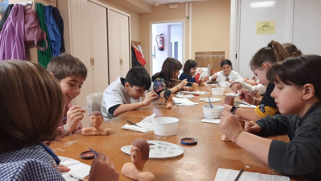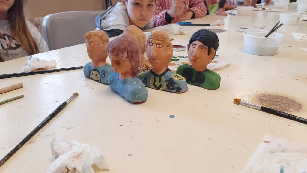 El taller va consistir en fer un autoretrat creat a la sessió de dibuix. A les sessions de ceràmica, vam fer el nostre bust amb fang i a la última sessió, el vam pintar.