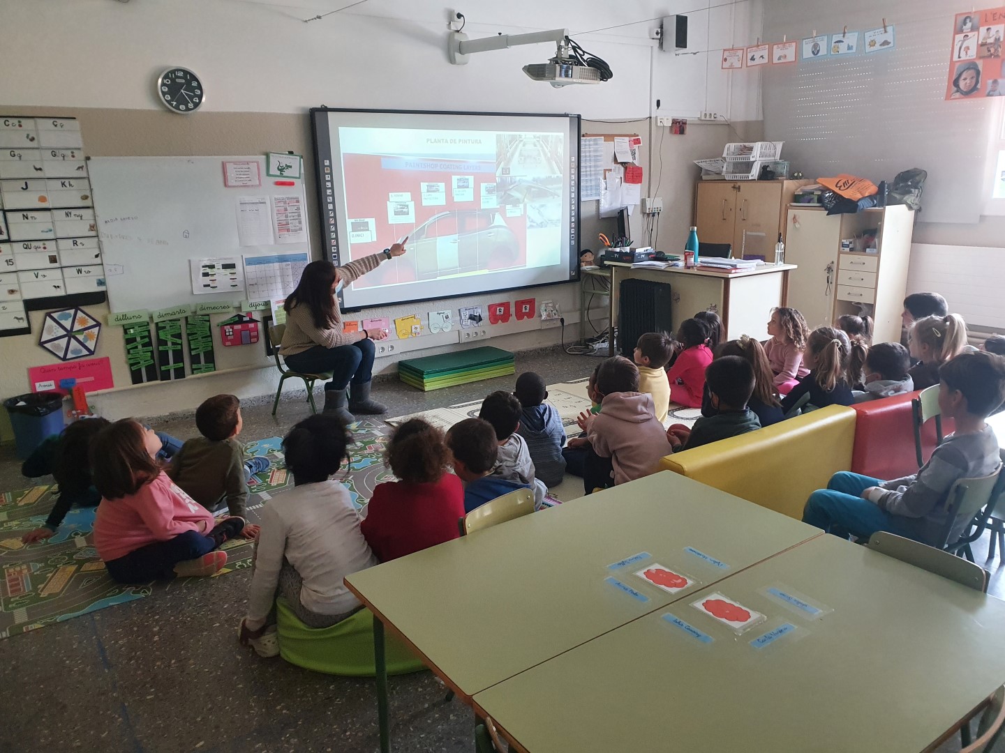 LA MAMA DE LA CARLA O. AVUI HA VINGUT A L’ESCOLA A EXPLICAR-NOS EL SEU OFICI. LA CRISTINA ÉS ENGINYERA I ENS HA ENSENYAT COM TREBALLA A LA SEVA EMPRESA, ON CONSTRUEIXEN COTXES. COM ELS FABRIQUEN, COM ES MONTEN I ES PINTEN, QUÈ FAN LES PERSONES I QUÈ FAN ELS ROBOTS…