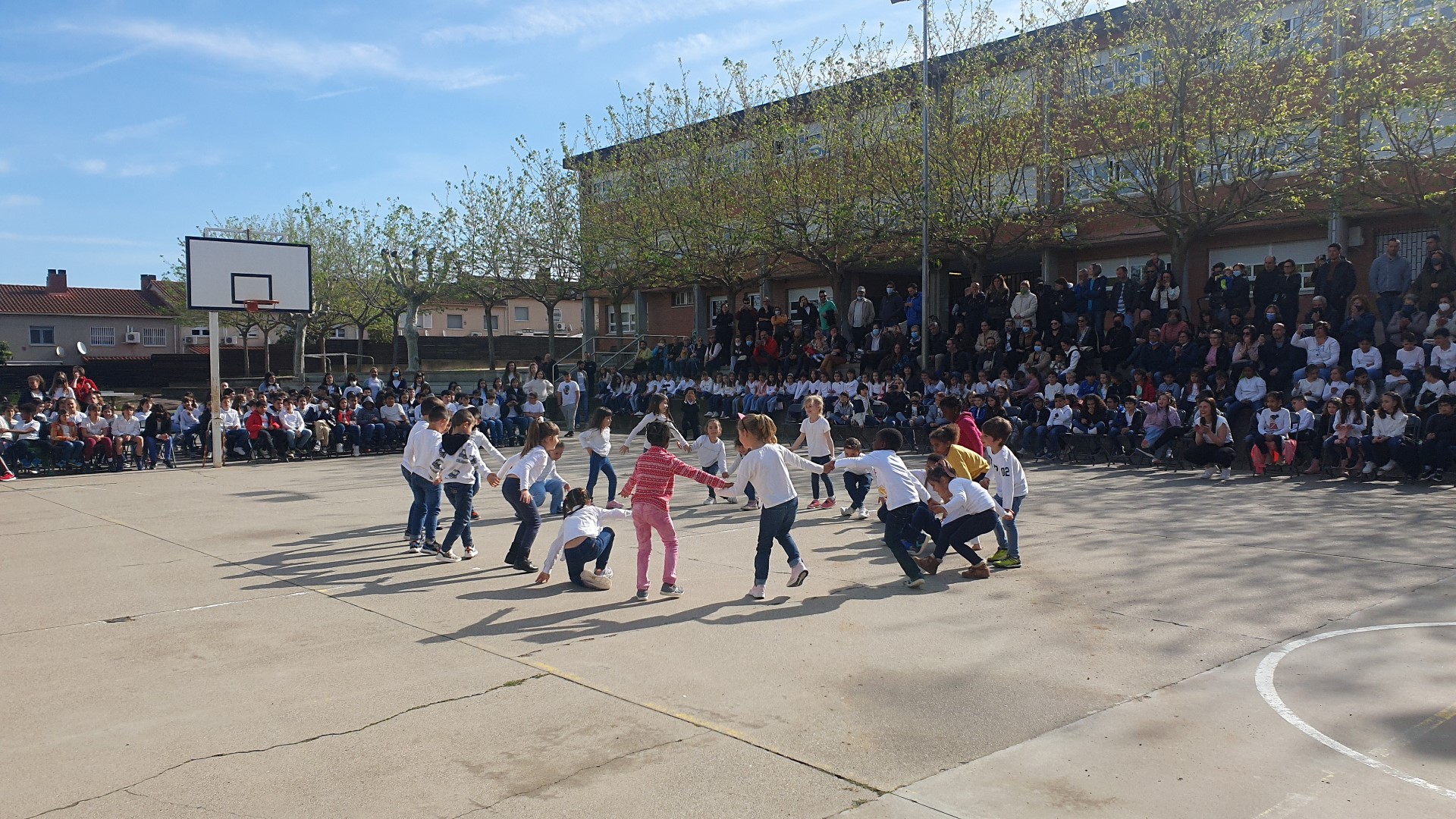 AVUI HEM CELEBRAT SANT JORDI!! HEM GAUDIT DELS JOCS FLORALS I DE LES DANSES QUE HEM FET TOTS ELS NENS I NENES DE L’ESCOLA. HA SIGUT MOLT BONIC PERQUÈ PER FI HEM POGUT BEURE LES CARES I ELS SOMRIURES DE LA RESTA DE COMPANYS I COMPANYES I DELS I LES MESTRES!