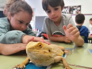 - EL DRAC BARBUT: ÉS DE COLOR GROC, LA PELL PUNXA, TÉ 4 POTES, UNA CUA LLARGA, MENJA CUCS, FORMIGUES I FULLES.