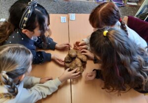 HEM OBSERVAT I TOCAT OUS DE DIFERENTS ANIMALS: DE GALLINA, DE GUATLLA, LA BOSSA DELS OUS DE TAURÓ GAT I DE LA RAJADA, I UNA RÈPLICA D’UN OU I D’UNA POSTA D’OUS DE DOS DINOSAURES DIFERENTS. HEM APRÈS QUE ELS OUS DELS PEIXOS SÓN TOUS I ELS OUS DE LES AUS I RÈPTILS TENEN UNA CLOSCA DURA.