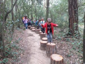 AVUI HEM FET UNA EXCURSIÓ D’ALLÒ MÉS DIFERENT! HEM FET UN RECORREGUT SENSORIAL PEL BOSC DESCALÇOS! AL PRINCIPI ENS MOLESTAVA UNA MICA, PERÒ A POC A POC ENS HEM ANAT ACOSTUMANT. HEM FET EQUILIBRIS, HEM VIST PETJADES DELS ANIMALS QUE VIUEN AL BOSC, HEM OLORAT PLANTES AROMÀTIQUES, HEM HAGUT D’ENDEVINAR QUINES COSETES TOCÀVEM SENSE MIRAR I HEM FET UN CAMÍ AMB ELS ULLS TAPATS AMB ANTIFAÇOS! HA SIGUT UNA GRAN EXPERIÈNCIA!