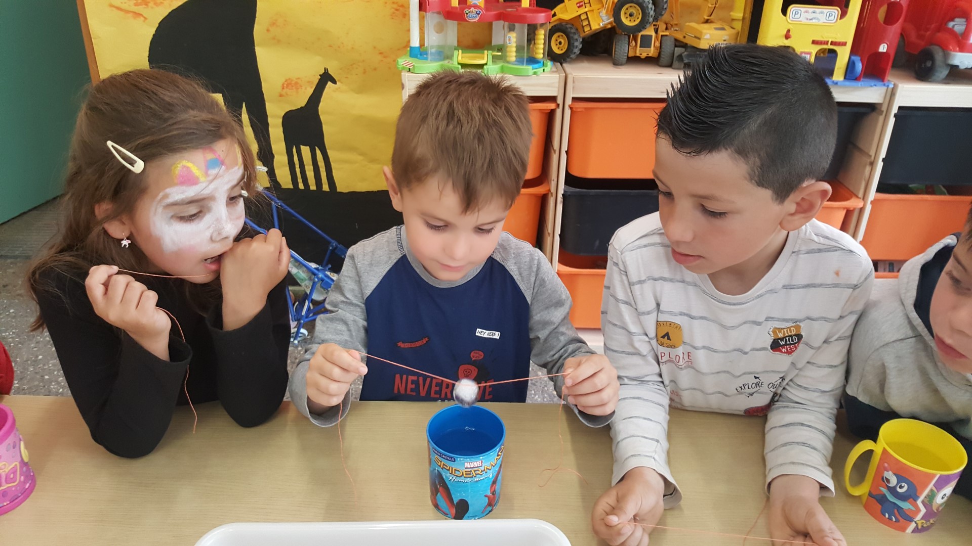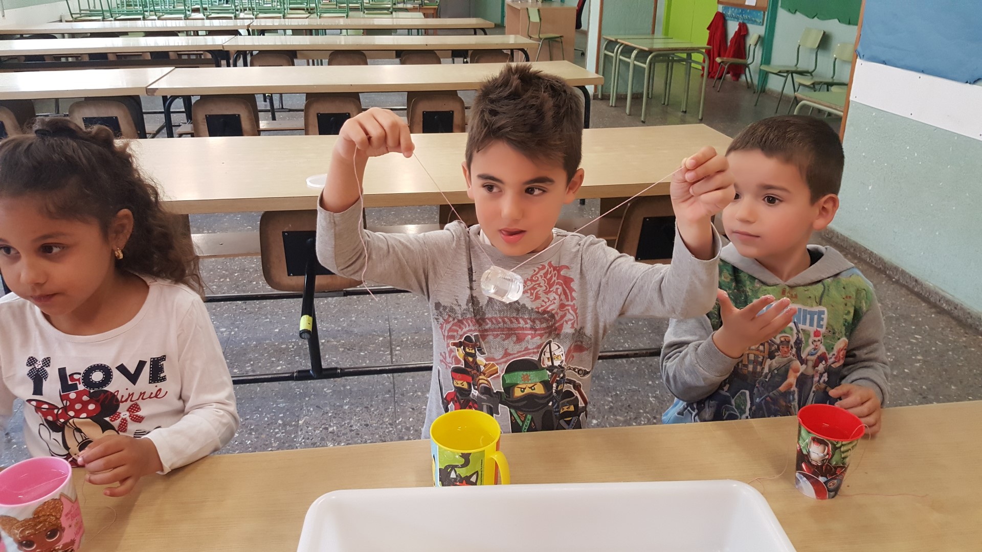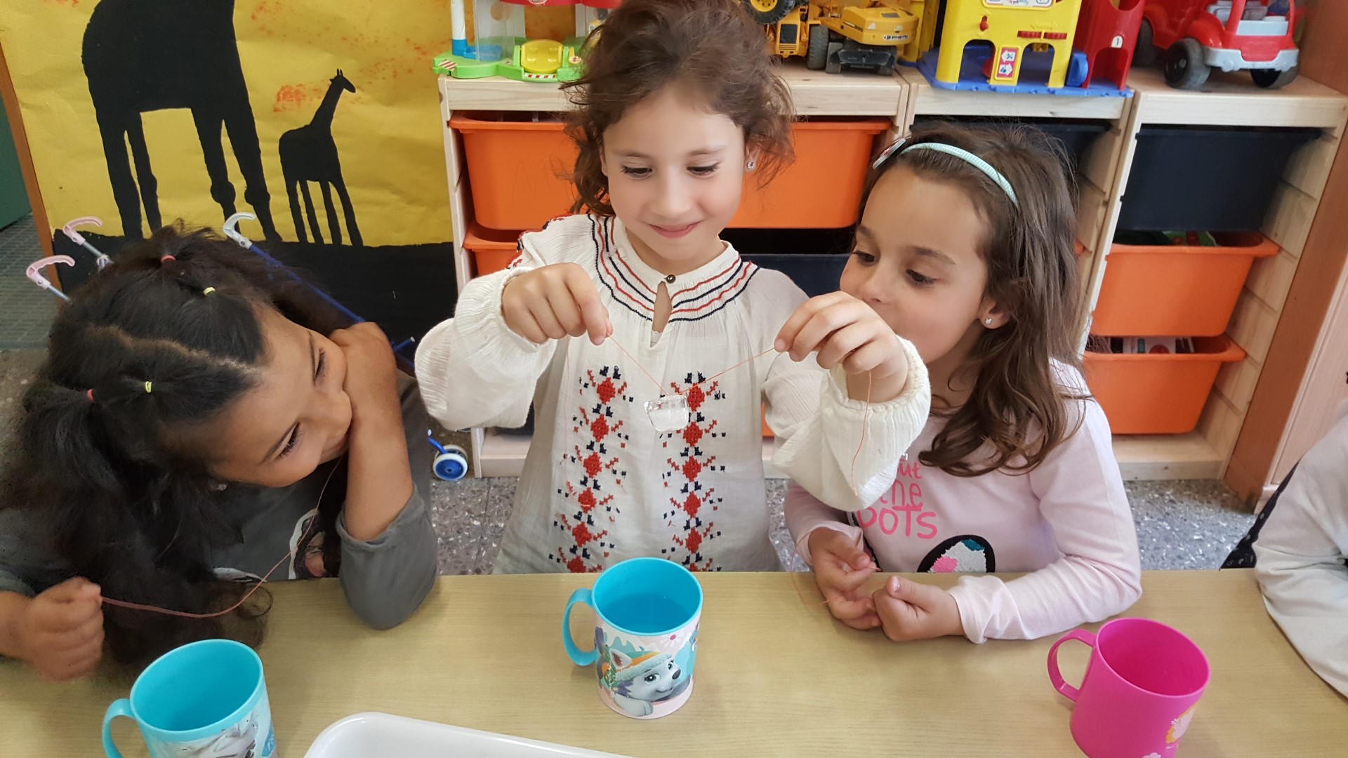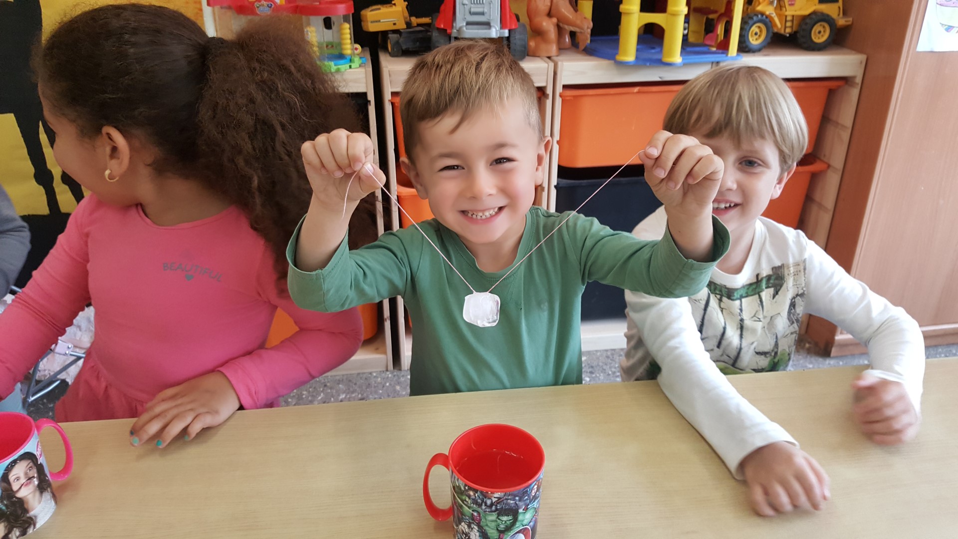 ELS BRASILERS I ELS ITALIANS HEM FET DE CIENTÍFICS I HEM FET UN EXPERIMENT! HAVÍEM DE PESCAR GLAÇONS AMB UN FIL! HEM OMPLERT UN GOT AMB AIGUA I HEM FICAT UN GLAÇÓ A DINS; AMB UN FIL L’HEM INTENTAT PESCAR, PERÒ ERA IMPOSSIBLE!