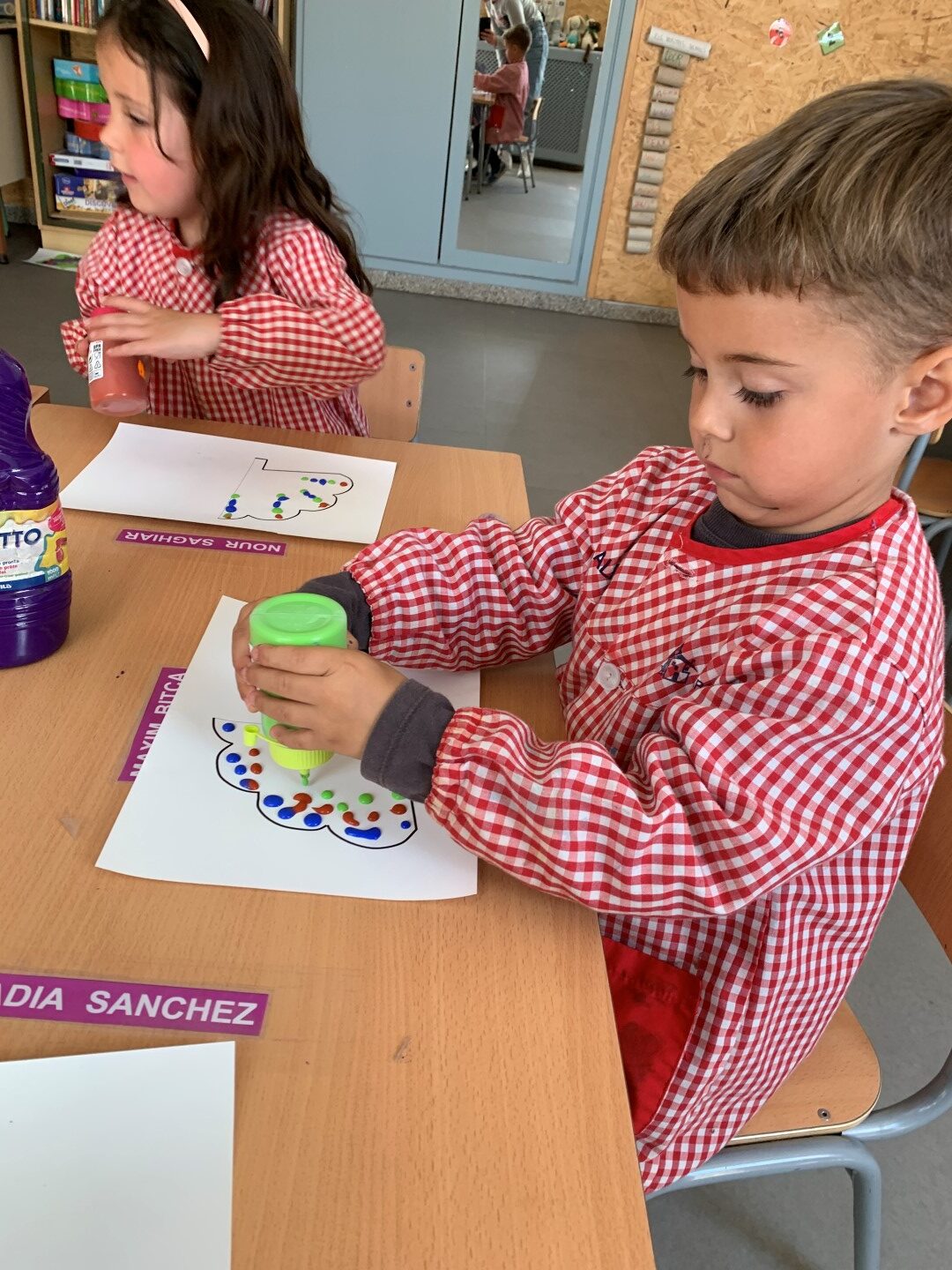 PERQUÈ EL PAÓ QUEDÉS BEN DRET EL VAM ENGANXAR EN UNA BASE QUE HAVÍEM PINTAT DE COLOR VERD. I DESPRÉS DE MOLTA FEINA I MOLT ESFORÇ, JA TENIM EL NOSTRE PAÓ!