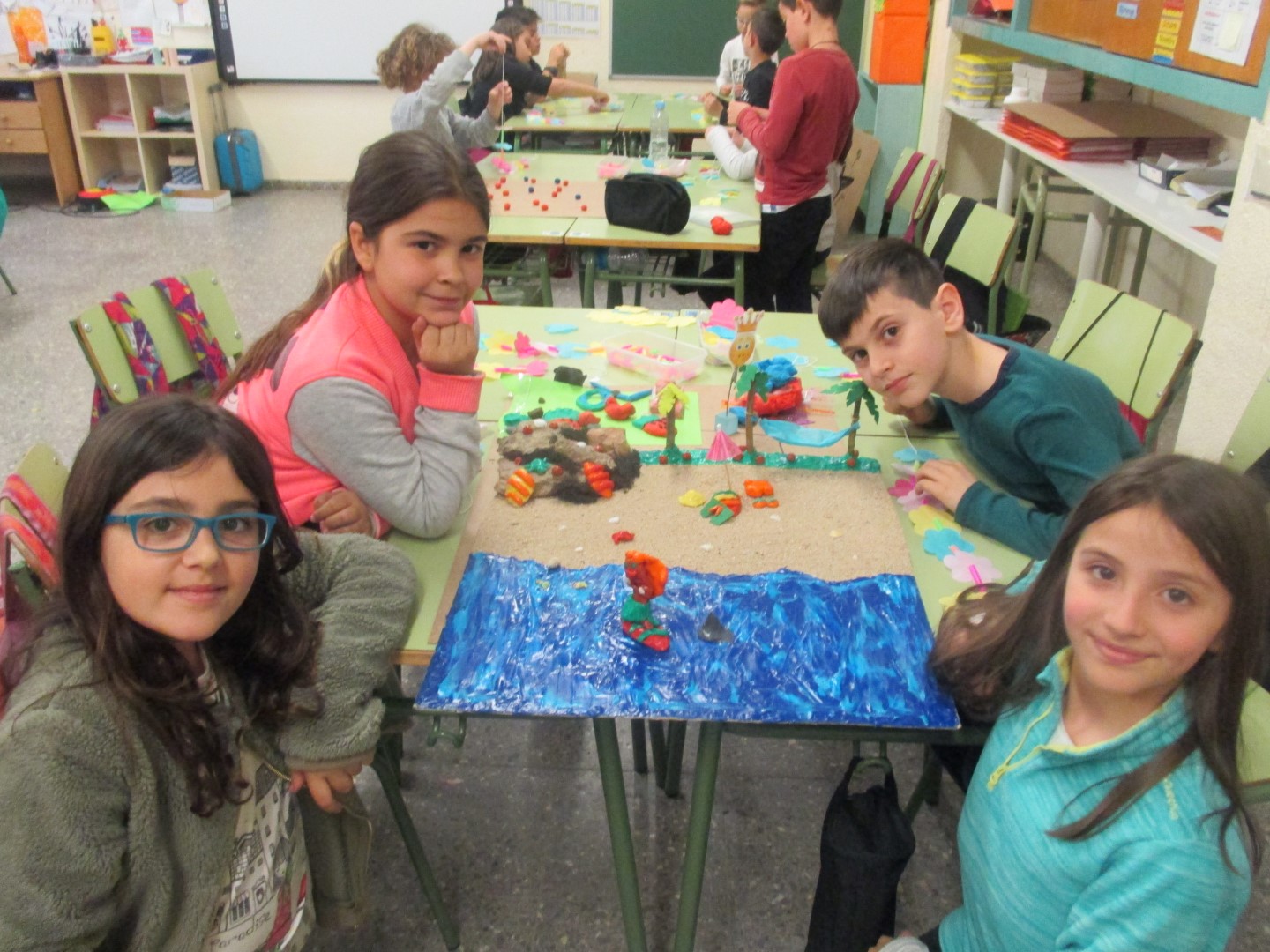 Com que volíem compartir el que havíem fet amb els nostres fillols, també els hi vam fer un detallet. Els/Les hawaians/es vam fer-los-hi un collar de flors i els/les americans/es una corona com la de l’estàtua de la llibertat.