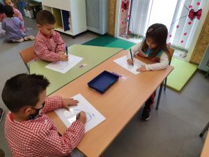 HEM FET UN DIBUIX MOLT BONIC I, QUAN HEM ACABAT, HEM VIST QUE COM QUE EL PLÀSTIC ES TRANSPARENT… EL NOSTRE DIBUIX ES VEIA PELS DOS COSTATS!! MÀGIA!!