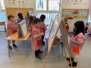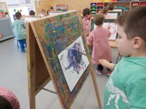 Aquest segon trimestre a P4, hem iniciat la plàstica aprenent els colors de l’hivern i tot seguit, amb aquests hem fet pintura lliure amb cavallet.