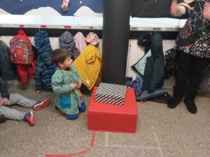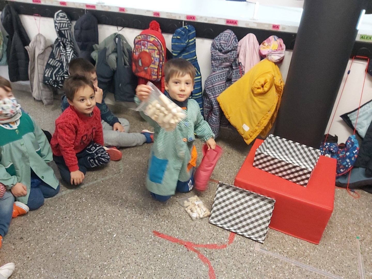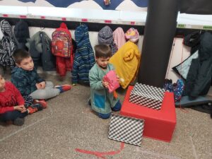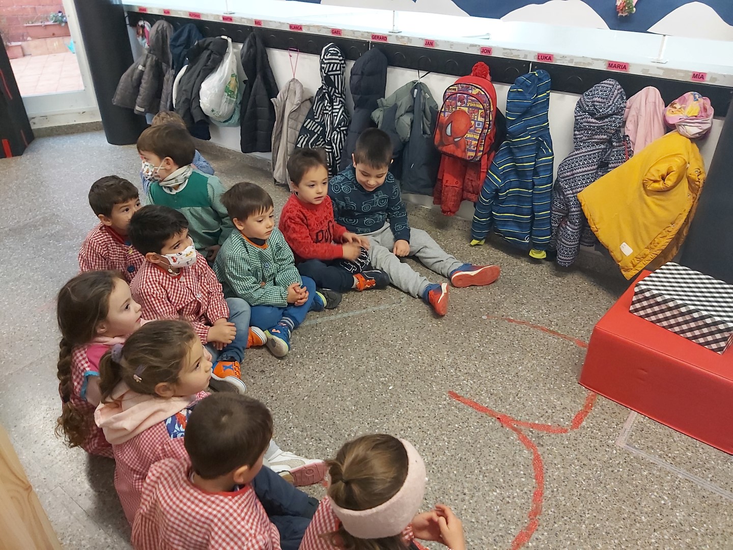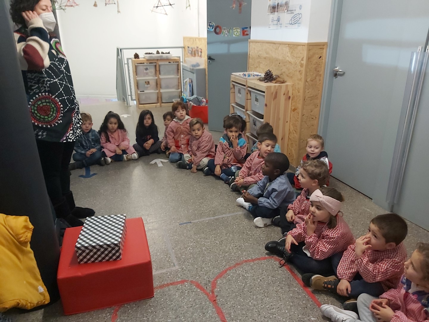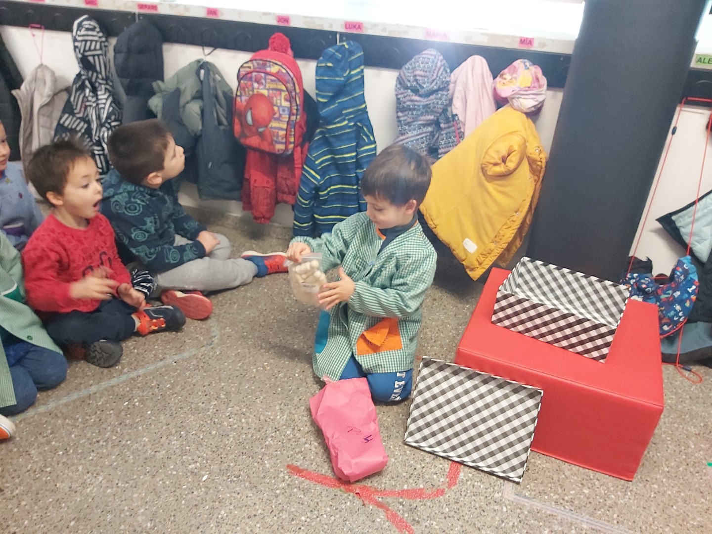NOMÉS ENTRAR A L’ESCOLA HEM VIST QUE HI HAVIA UN REGAL DELS REIS MAGS PER A NOSALTRES!! ENS HEM PREPARAT MOLT RÀPID I ENS HEM REUNIT TOTS I TOTES AL PASSADÍS! EN GAEL HA ESTAT L’ENCARREGAT D’OBRIR-LO, UNS NINS PER JUGAR A LA CLASSE! ENS HAUREM D’IMAGINAR LES CARES I ROBES QUE PORTEN!