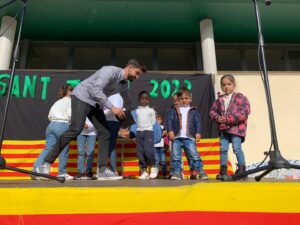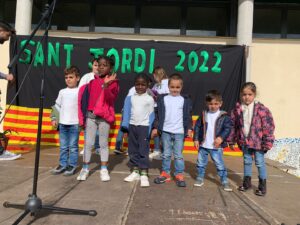 DIVENDRES AL MATÍ ENS VAM REUNIR TOTA L’ESCOLA, AL PATI DELS GRANS, PER CELEBRAR SANT JORDI! EN BIEL I L’AMADOU VAN RECOLLIR EL PREMI, A LA CLASSE DE P4, PER HAVER PARTICIPAT EN ELS JOCS FLORALS ESCRIVINT EL CONTE COL·LECTIU “LA PRINCESA I EL DRAC“. DESPRÉS VAM FER LA NOSTRA DANSA I, CAL DIR, QUE HO VAM FER SUPERBÉ!!!