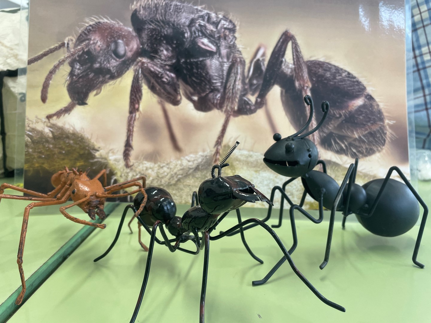 DESPRÉS ENS HA ENSENYAT UNA FORMIGA GEGANT DE PLÀSTIC, I ENS HA EXPLICAT QUINES SÓN LES SEVES FEINES. LA LIA HA FET DE FORMIGA REINA, EL JULEN I EL NILS HAN FET DE FORMIGUES OBRERES I HEM FET UNA PETITA REPRESENTACIÓ, COM SI FOSSIN FORMIGUES D’UN FORMIGUER.