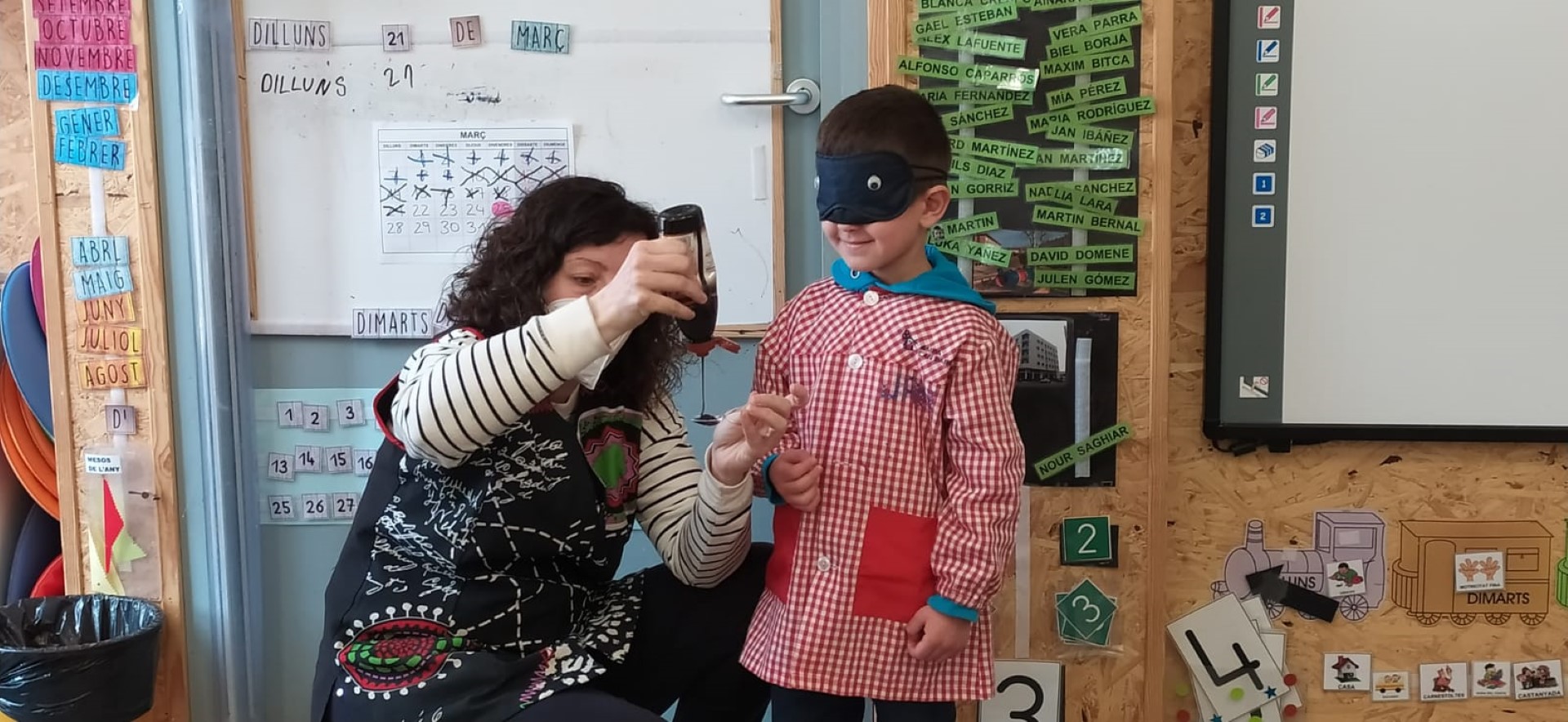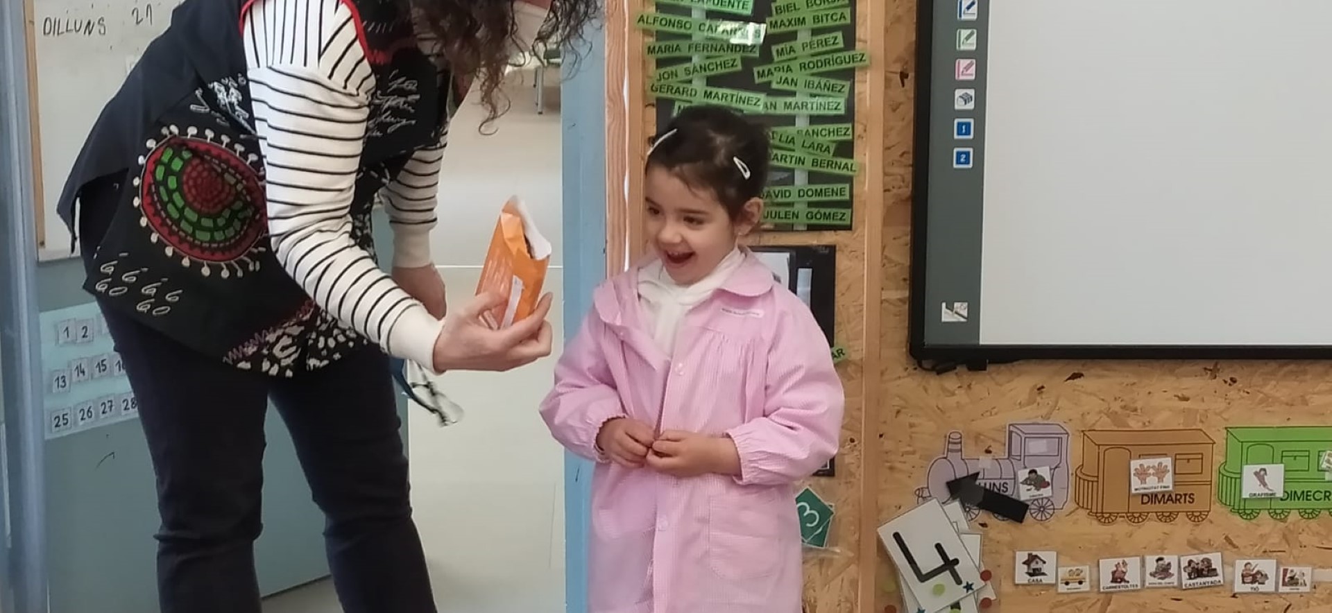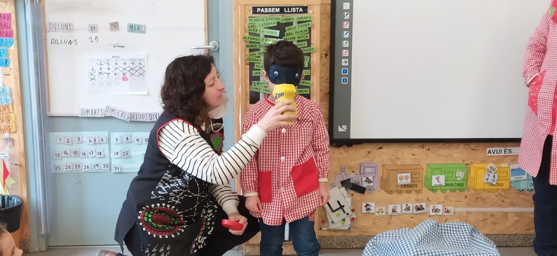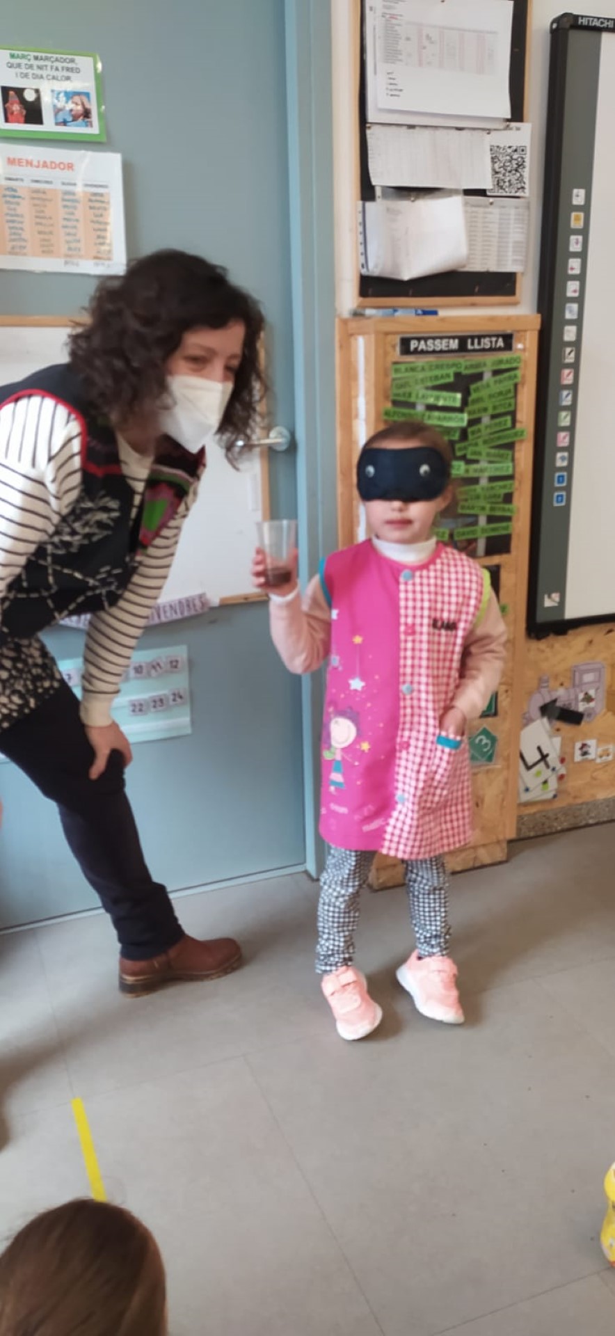 AVUI HEM AGUDITZAT ELS NOSTRES SENTITS: L’OLFACTE, EL TACTE, L’OÏDA, EL GUST I LA VISTA. QUAN HEM ARRIBAT A LA CLASSE HI HAVIA UNA SORPRESA AMAGADA AL MIG DE LA ROTLLANA. HEM ANAT SORTINT D’UN EN UN, I AMB ELS ULLS TAPATS, PRIMER AMB L’OLFACTE HAVIEM D’INTENTAR ENDEVINAR QUÈ ERA ALLÒ QUE OLORAVEM. DESPRÉS AMB EL TACTE HEM TOCAT A VEURE SI ERA DUR, TOU, SUAU, RUGÓS,… ALGUNES COSES SI LES MOVIEM TAMBÉ FEIEN SOROLL I D’ALTRES NO. FINALMENT AMB EL GUST HAVIEM DE TASTAR I DESCRIURE COM ERA EL GUST, SI ERA DOLÇ, SI ERA AMARG, SI TENÍA COSES PER DINS, A QUIN ALIMENT TENIA GUST,…