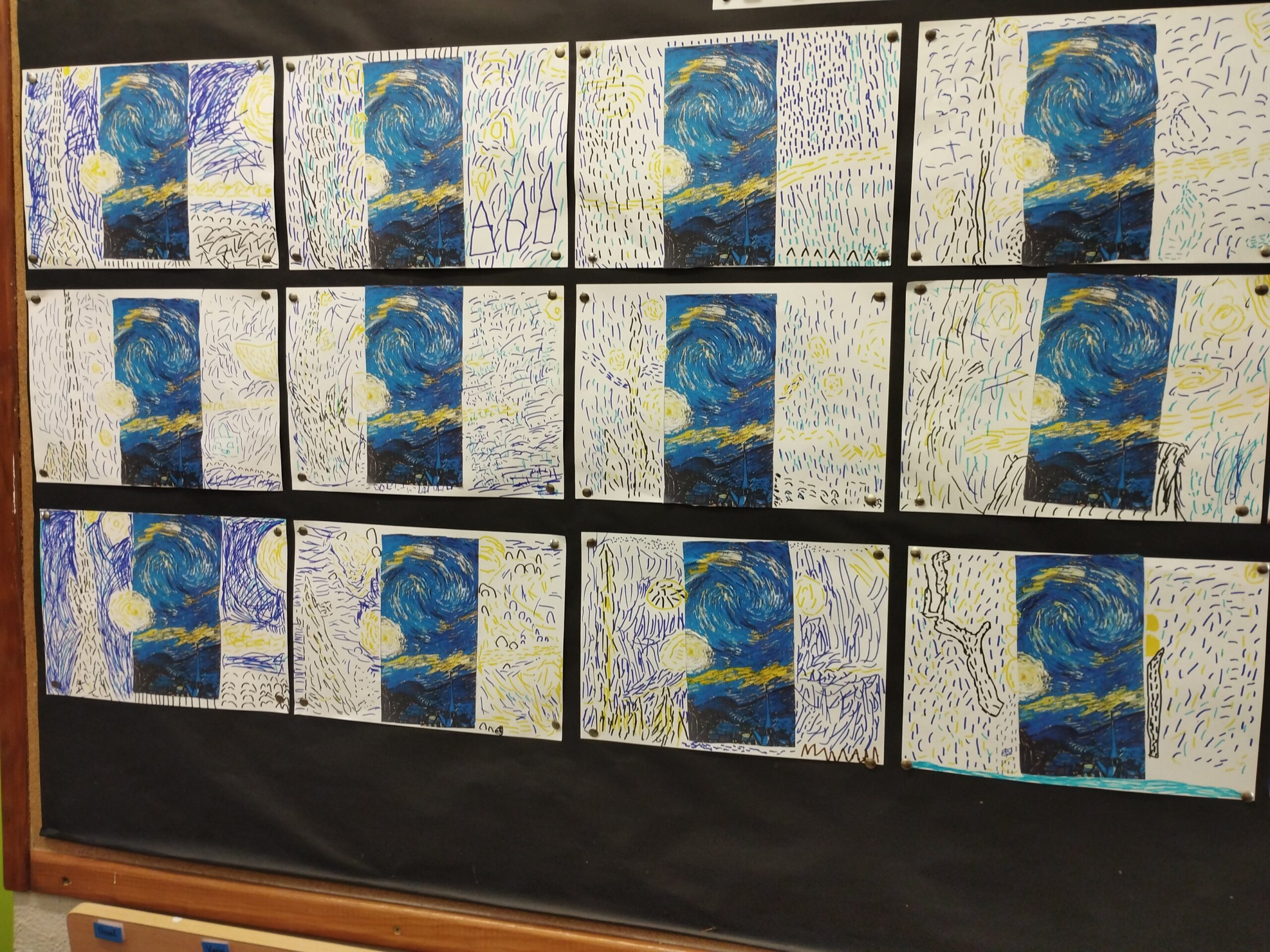 AVUI HEM COMENÇAT A TREBALLAR A UN PINTOR, A VINCENT VAN GOGH I HEM TREBALLAT LA NIT ESTELADA. HEM ENCETAT UNA CONVERSA SOBRE ELS COLORS QUE UTILITZA. LES TÈCNIQUES EMPRADES I DESPRÉS HEM FET LA NOSTRA OBRA A PARTIR D’UNA PART DEL QUADRE. MIREU QUINES OBRES HAN SORTIT!