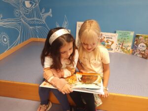 L’alumnat de 1r de l’escola de Can Parera i de l’escola Mogent (la meitat de la classe) han anat a visitar la biblioteca. Han gaudit tots junts de l’escolta de contes per part de la Iolanda, i han compartit moments de lectura. Aviat, hi farem una altra visita amb l’altra meitat del grup també amb l’escola Mogent.