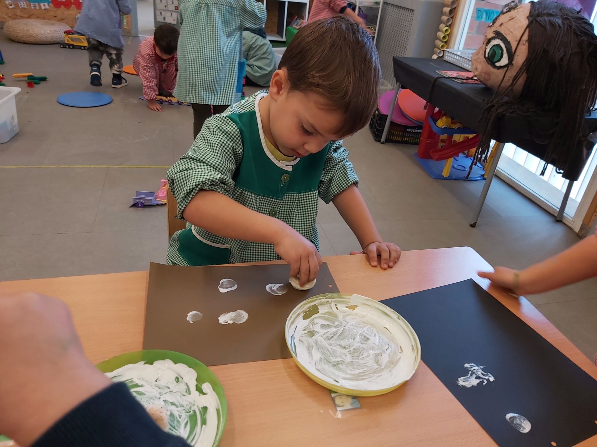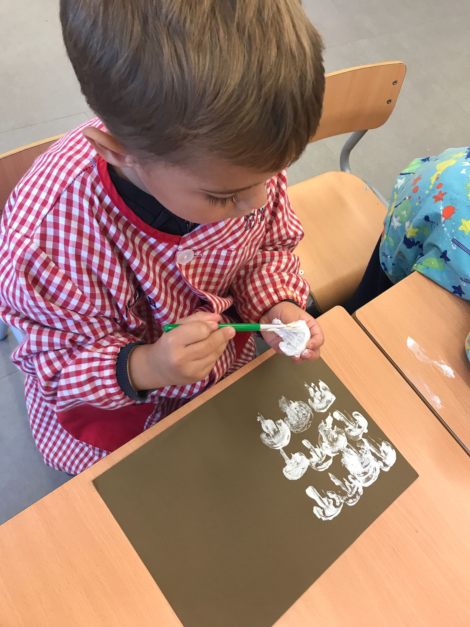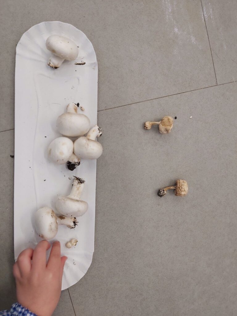 AMB LA RESTA DE XAMPINYONS, A UN PAPER NEGRE O MARRÓ HEM FET ESTAMPACIÓ AMB PINTURA BLANCA. SI VOLEU VEURE-HO TOT FEU CLIC AQUÍ. XAMPINYONS.