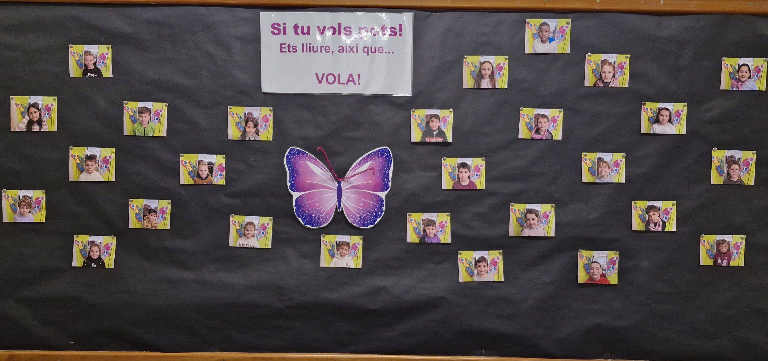 L’alumnat de 2n ha visualitzat un conte “Quan les nenes volen alt” i a continuació han reflexionat en grup. Després han realitzat diversos tallers, com una polsera de papallona del Dia de la dona per ells/es, i una targeta per a la dona més important de les seves vides a on han escrit paraules boniques de la persona. Finalment, han fet unes ales de papallona amb un rètol que deia “Si tu vols pots! Ets lliure, així que… vola!” i cadascú s’ha fet una fotografia, amb les quals han fet un mural.