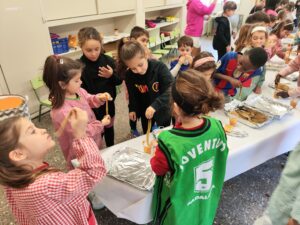 DURANT EL MES DE SETEMBRE VAM PLANTAR UNES QUANTES CEBES DE CALÇOT AL NOSTRE HORT. HEM ESTAT UNS MESOS CUIDANT-LES ENTRE TOTS I L’ESFORÇ HA VALGUT LA PENA! FA UNS DIES VAM AGAFAR ELS CALÇOTS DE L’HORT I VAM DECIDIR QUE SERIA UNA BONA IDEA CONVIDAR ELS NOSTRES PADRINS I PADRINES A FER UNA CALÇOTADA. DIT I FET! VAM PREPARAR-HO TOT PERQUÈ POGUÈSSIM PASSAR UNA GRAN ESTONA AMB ELLS… ELS CALÇOTS ESTAVEN BONÍSSIMS! DONAR LES GRÀCIES TAMBÉ A LES CUINERES DE L’ESCOLA PER AJUDAR-NOS A FER-LOS AL FORN.