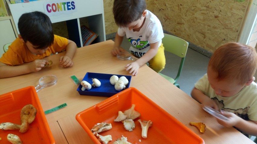 EN QUINES CONDICIONS SURTEN, DIFERENTS CLASSES DE BOLETS, ELS CLASSIFIQUEM, ELS MIREM AMB LUPA PER OBSERVAR LES SEVES CARACTERÍSTIQUES, ELS DIBUIXEM,… MICA EN MICA ANEM APRENENT MÉS COSES SOBRE EL NOSTRE ENTORN.