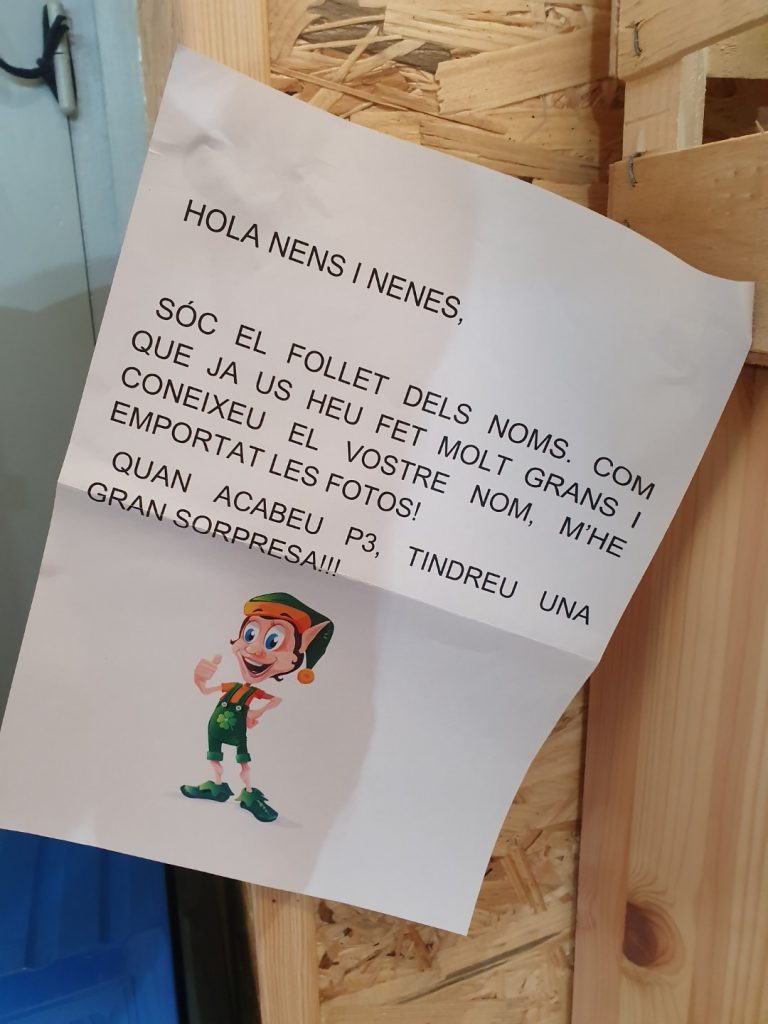 AVUI, QUAN HEM ARRIBAT A L’ESCOLA, ENS HEM TROBAT UNA NOTA DEL FOLLET DELS NOMS I ELS NOSTRES NOMS SENSE FOTO!!