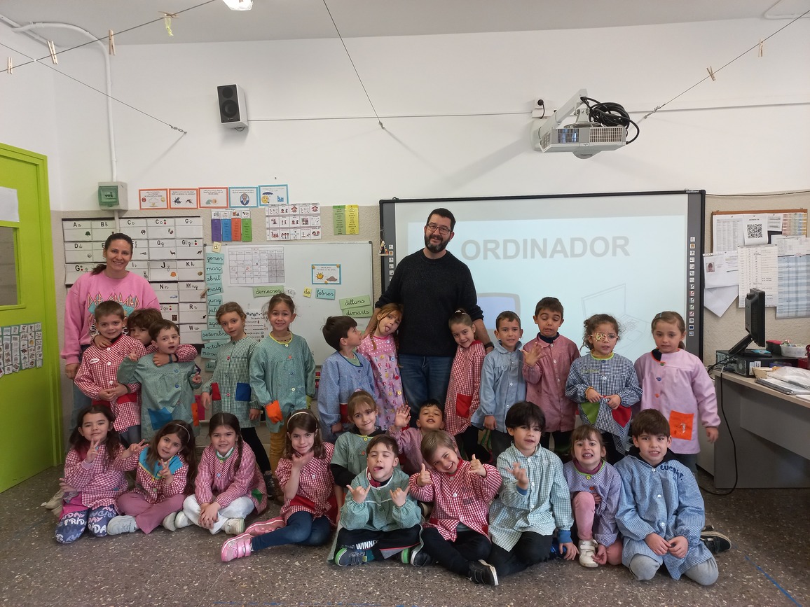 AVUI ENS HA VISITAT EL JOSE, EL PARE DE L’ARIA. EL JOSE ÉS INFORMÀTIC I TREBALLA A L’AJUNTAMENT DE MONTORNÈS. ENS HA EXPLICAT QUINES SÓN LES EINES QUE FA SERVIR PER FER LA SEVA FEINA: L’ORDINADOR, EL RATOLÍ I EL TECLAT FONAMENTALMENT, PERÒ TAMBÉ FA ÚS D’INTERNET. LA SEVA FEINA, JUNTAMENT AMB LA DELS SEUS COMPANYS/ES ÉS MOLT IMPORTANT PERQUÈ TOTES LES COSES FUNCIONIN AL POBLE, DES DELS SEMÀFORS O ELS FANALS, FINS A QUALSEVOL GESTIÓ QUE VULGUEM FER COM A CIUTADANS/ES.