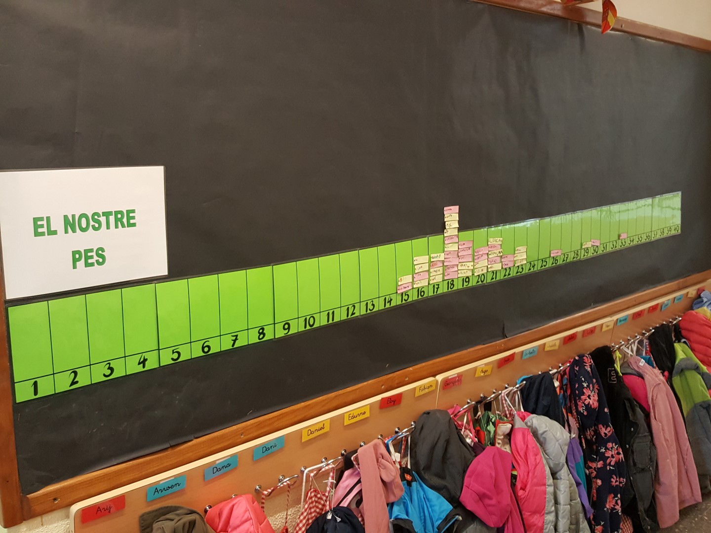DESPRÉS HEM ENGANXAT EL NOSTRE NOM A LA TIRA DEL PES, AIXÍ PODEM VEURE QUIN ÉS EL PES MÉS HABITUAL A LES NOSTRES CLASSES, QUI PESA MÉS, QUI PESA MENYS,…