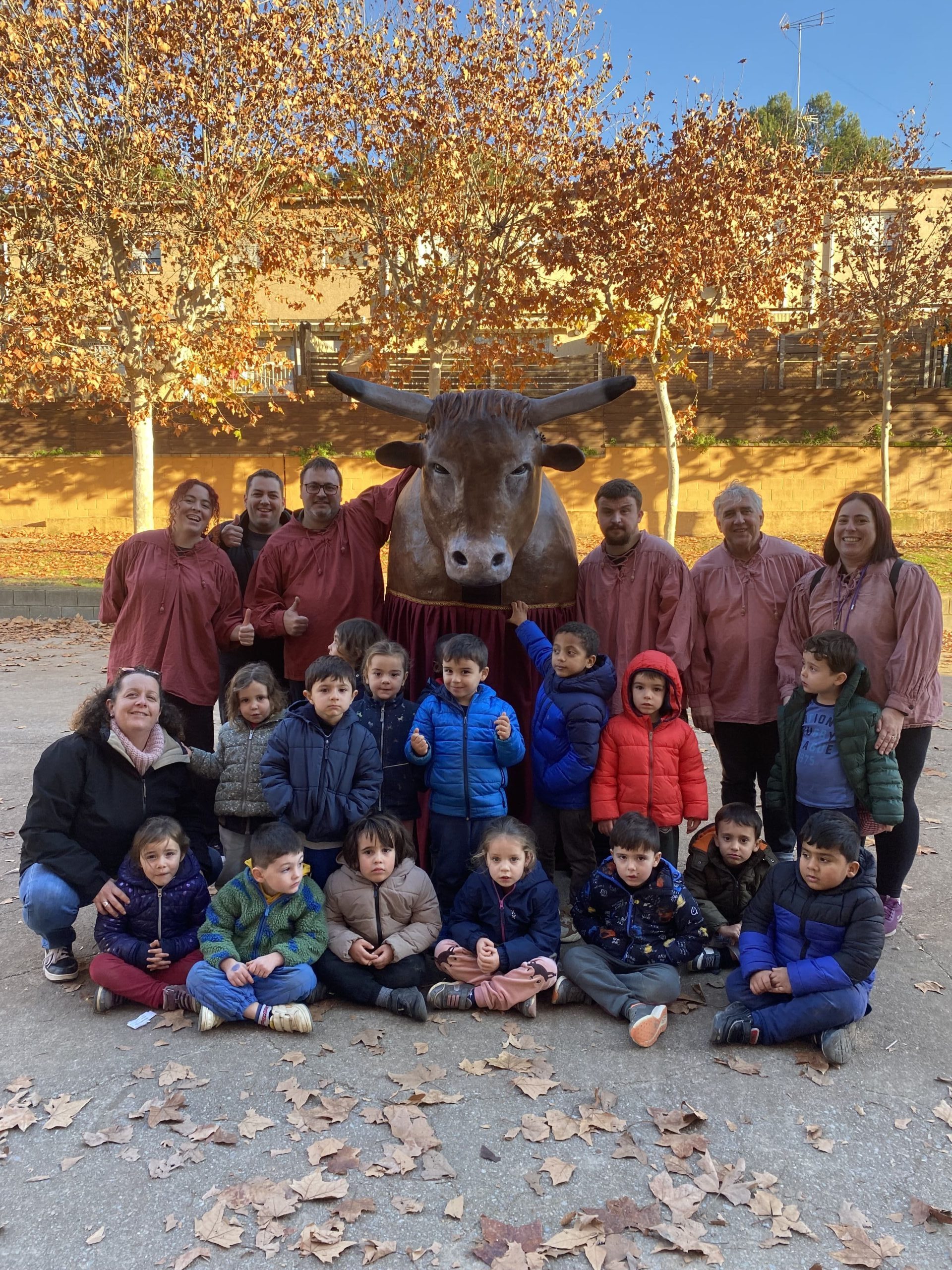 EN ARRIBAR AL PORXO, LA COLLA DEL BOU I LA FIGURA ENS ESTAVEN ESPERANT! I TAMBÉ, ELS COMPANYS I COMPANYES DEL GRUP DE 3r, HAN VINGUT A COMPARTIR UNA ESTONA AMB NOSALTRES PERQUÈ LA SEVA CLASSE PORTA EL NOM DEL BOU!