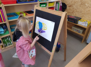 VAM APROFITAR LA SESSIÓ DE PLÀSTICA PER FER AQUEST DIBUIX I, UN COP ACABAT, VAM TREURE ELS CAVALLETS PER TAL DE FER UN DIBUIX LLIURE AMB PINTURA, COM SI FOSSIM ARTISTES! ENS ENCANTA I ENS RELAXA MOLTÍSSIM!!