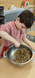 PRIMER HEM TRITURAT LES GALETES I HEM AFEGIT LA CREMA DE XOCOLATA.  SEGUIDAMENT HEM AMASSAT I QUAN JA TENIEM UNA MASSA CONSISTENT, FINALMENT HEM FET LES BOLETES I LES HEM ARREBOSSAT AMB CACAU EN POLS.
