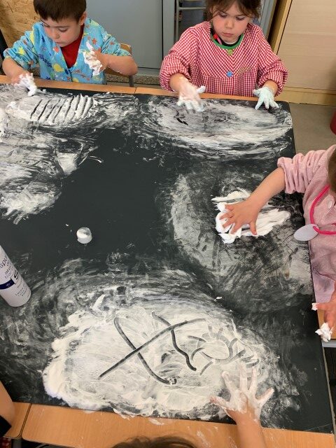 AHIR A GRAFISME VAM FER TRAÇ LLIURE FENT SERVIR TOTS ELS MATERIALS AMB QUÈ HEM TREBALLAT FINS ARA: PASTA DE DENTS, ESCUMA D’AFAITAR, SAL I XOCOLATA. ENS HO VAM PASSAR SUPERBÉ, SI HO VOLEU VEURE FEU CLIC AQUÍ GRAFISME.