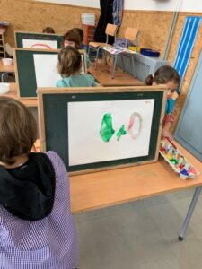 A PLÀSTICA HEM FET D’ARTISTES. DEIXANT VOLAR LA IMAGINACIÓ I PINTANT LLIUREMENT AMB MOLTS COLORS DE PINTURA DIFERENTS.