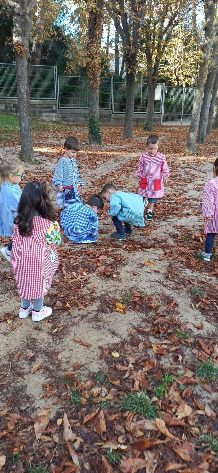 AVUI HEM COMENÇAT A PARLAR DE LA TARDOR: COMENÇA A FER MÉS FRED, LES FULLES DELS ARBRES CANVIEN DE COLOR I CAUEN, ALIMENTS QUE PODEM MENJAR,… EN ACABAR I DESPRÉS D’APRENDRE ALGUNA CANÇÓ RELACIONADA AMB AQUESTA ESTACIÓ, HEM ANAT TOTS I TOTES A BUSCAR ELEMENTS DE LA TARDOR AL PATI DELS GRANS! HEM HAGUT D’ESTAR MOLT ATENTS I OBRIR MOLT BÉ ELS ULLS. AL PASSADÍS TENIU UNA MOSTRA DE TOT EL QUE HEM RECOLLIT, HEM TREBALLAT DE VALENT!