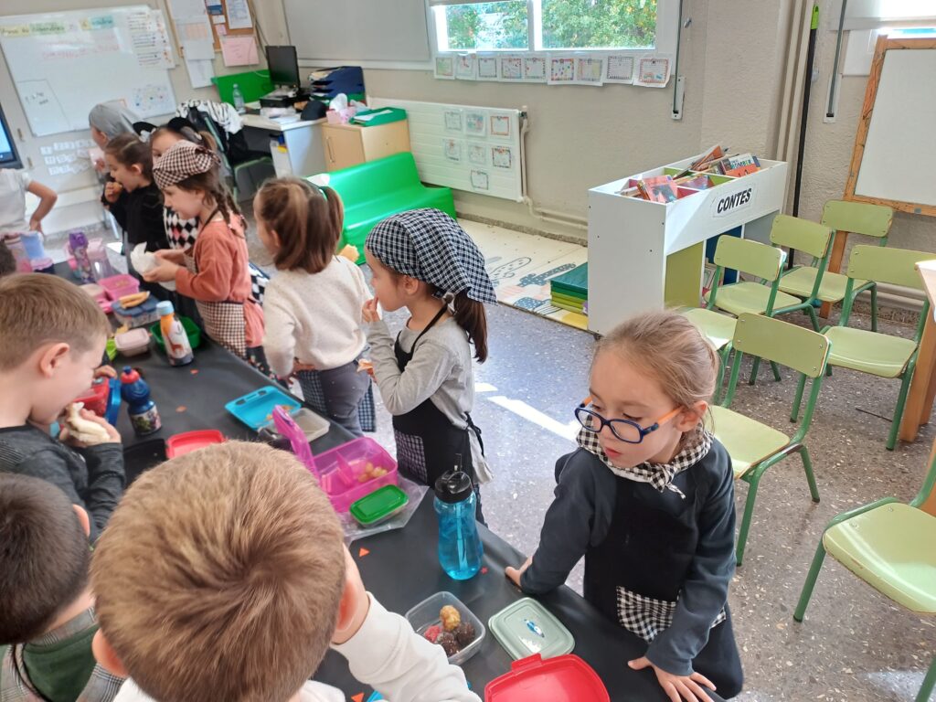 DIJOUS 31 D’OCTUBRE ELS BANYETES I LES ANGELETES VAM CELEBRAR LA CASTANYADA! AL MATÍ VAM FER UN ESMORZAR ESPECIAL TOTS JUNTS, AMB EL QUE HAVÍEM PORTAT DE LA TARDOR. A LA TARDA ENS VAM REUNIR AMB ELS NOSTRES PADRINS PER BUSCAR ELEMENTS DE LA TARDOR PEL PATI. QUAN EN VAM TENIR FORÇA, VAM CREAR UNES BONIQUES MANDALES!! PER ACABAR, ENS VAM REUNIR TOTA L’ESCOLA AL PATI DELS GRANS, VAM BALLAR AMB ELS PADRINS I VAM MENJAR CASTANYES TORRADES!!