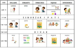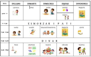 EL NOSTRE HORARI Tram dels Petits28/09/23 AQUEST NOU CURS ELS PETER PAN I WILLY WONKA TENIM UN HORARI. CADA MATÍ MIREM QUÈ ENS TOCA FER.