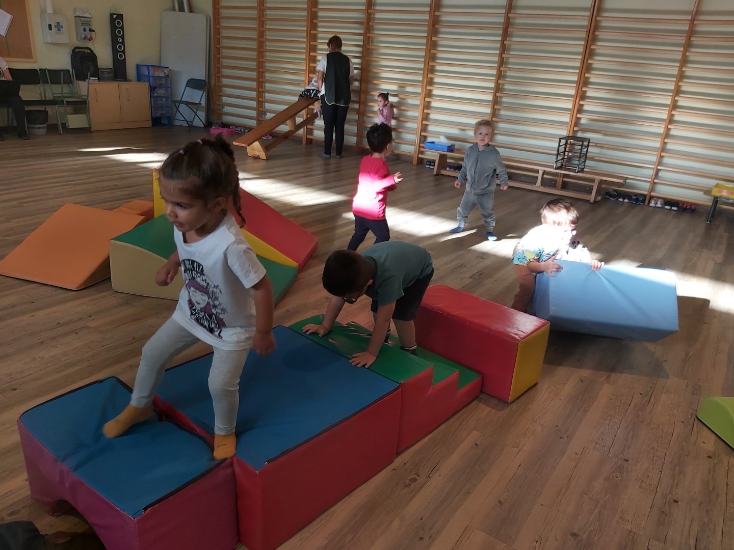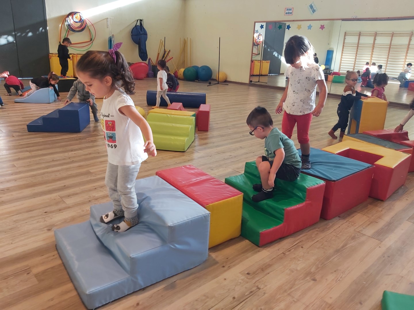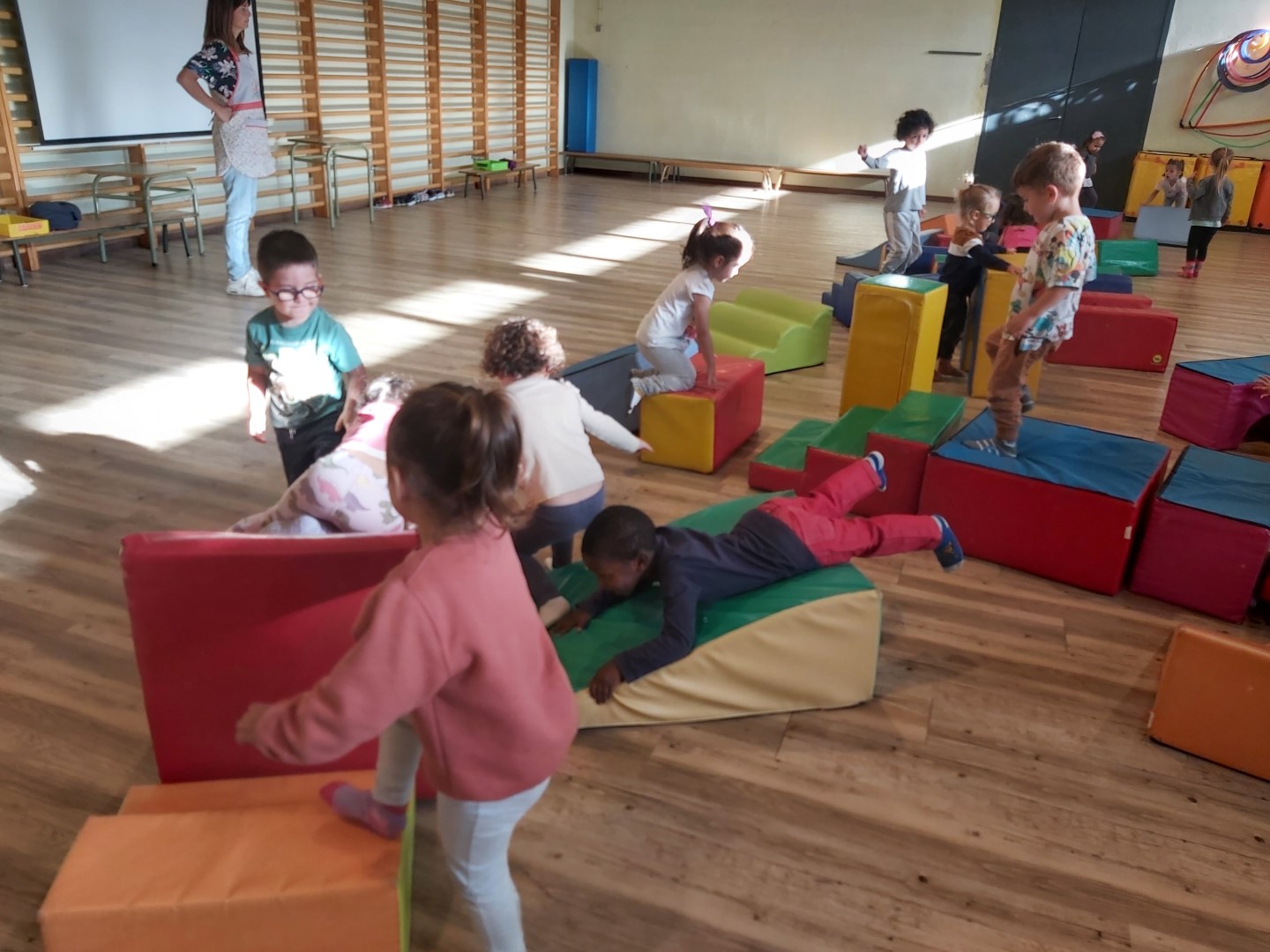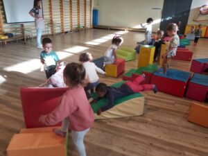 AVUI, PER FI, HA ARRIBAT EL PRIMER DIA DE PSICO! HEM ANAT AL GIMNÀS GRAN, ENS HEM TRET LES VAMBES, ENS HEM POSAT ELS MITJONS DE PSICO I HEM COMENÇAT A ESCALFAR EL COS AMB UNA CANÇÓ BEN DIVERTIDA. DESPRÉS, ENTRE TOTS, HEM CONSTRUÏT UNA MURALLA AMB LES PECES TOVES I ENS HEM POSAT EN FILA UN AL COSTAT DE L’ALTRE (EL CUL AL MIRALL); A LA DE TRES HEM ANAT A DESTRUIR LA MURALLA I HEM COMENÇAT A JUGAR! HEM FET CIRCUITS, HEM SALTAT, HEM BAIXAT PEL TOBOGAN… QUAN HA SONAT LA MÚSICA TRANQUIL·LA ENS HEM ESTIRAT A RELAXAR-NOS. QUAN ESTÀVEM BEN TRANQUILS, HEM RECOLLIT TOTES LES PECES, ENS HEM TRET ELS MITJONS I ENS HEM POSAT LES VAMBES NOSALTRES SOLS. PER ACABAR HEM EXPLICAT A QUÈ HEM JUGAT I COM ENS HEM SENTIT!