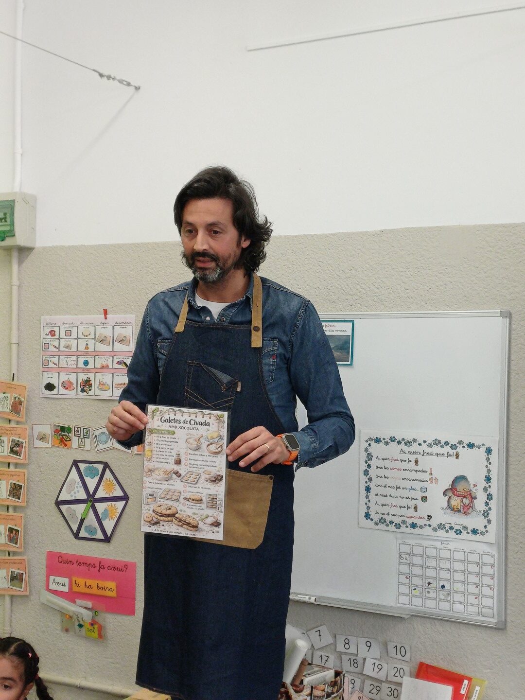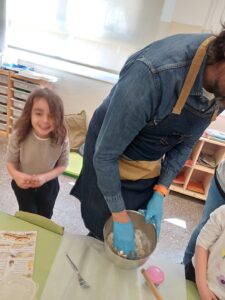 Avui ens ha visitat en Pep, el papa d’en Guillem que és flequer a @calelvira. Ens ha explicat el seu ofici i ens ha ensenyat a fer unes galetes boníssimes! Ens ha portat una recepta i ens ha explicat la importància de seguir-la perquè surti bé allò que cuinem. També és imprescindible rentar-se bé les mans.