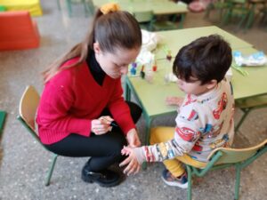 Divendres passat va venir a la classe l’Elena, la mama de l’Alejandro, a explicar-nos el seu ofici. Ella és esteticista, però s’ha especialitzat en manicura i pedicura. Va portar les eines que fa servir per deixar perfectes les mans i els peus i ens va portar pintaungles perquè practiquéssim nosaltres sols! També va portar crema hidratant i ens va ensenyar a fer massatges a les mans. Per acabar, ens va pintar les ungles a tots els nens i nenes que vam voler, amb dibuixets i tot! Moltes gràcies, Elena!